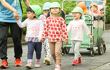 園庭はないので、天気が良い日にはほぼ毎日、お散歩に出かけます。 -
