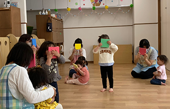 子どもたちの可愛いしぐさがたくさん見られるので、手遊び・歌・わらべ歌遊びをいつも一緒に楽しんでいます。
